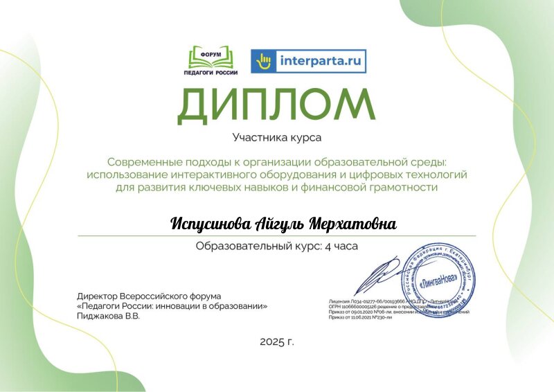 Испусинова Айгуль Мерхатовна Hml